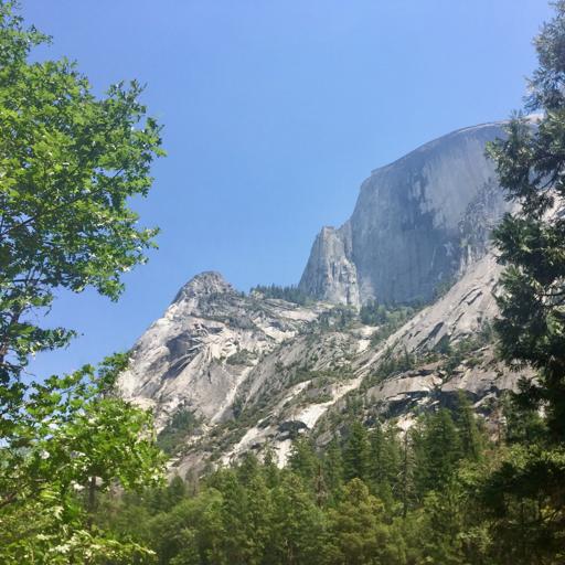View North Dome and Half Dome from Curry VillageMarble Fork Kaweah River from Tokopah Trailhead