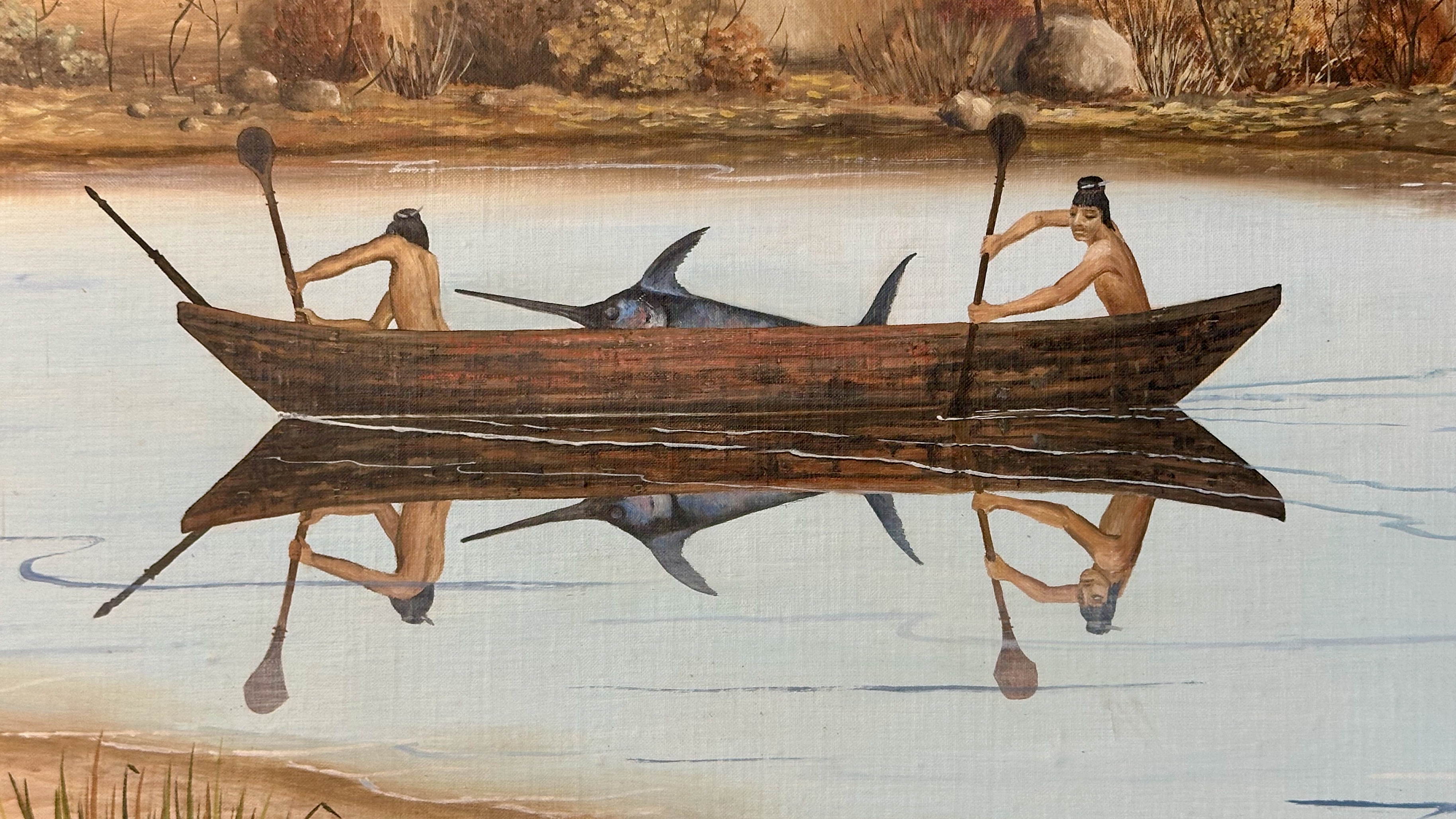 View Malibu Lagoon from Adamson HouseChumash Tomol (detail of painting at Adamson House)
