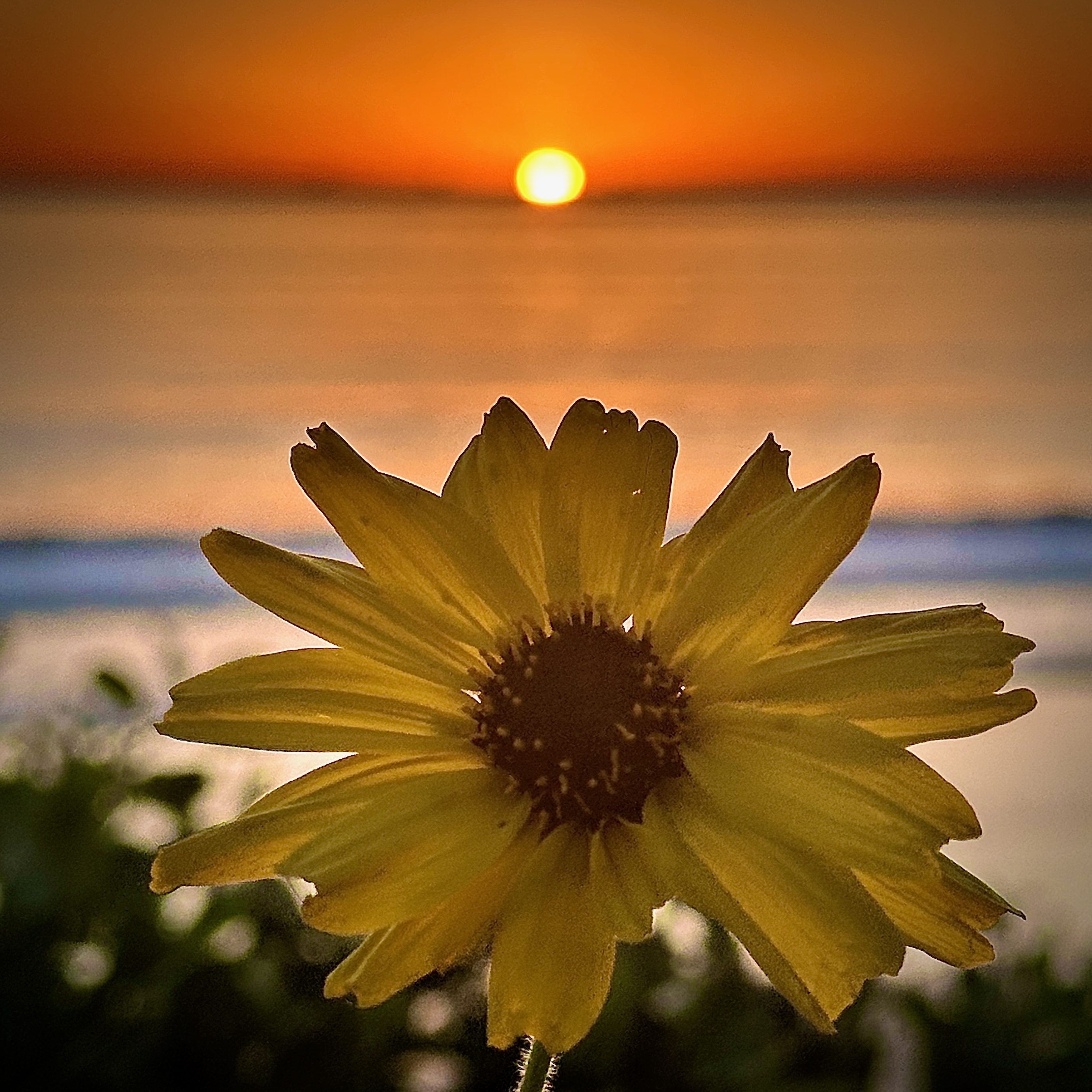 Sunset with Coreopsis at Bates Beach