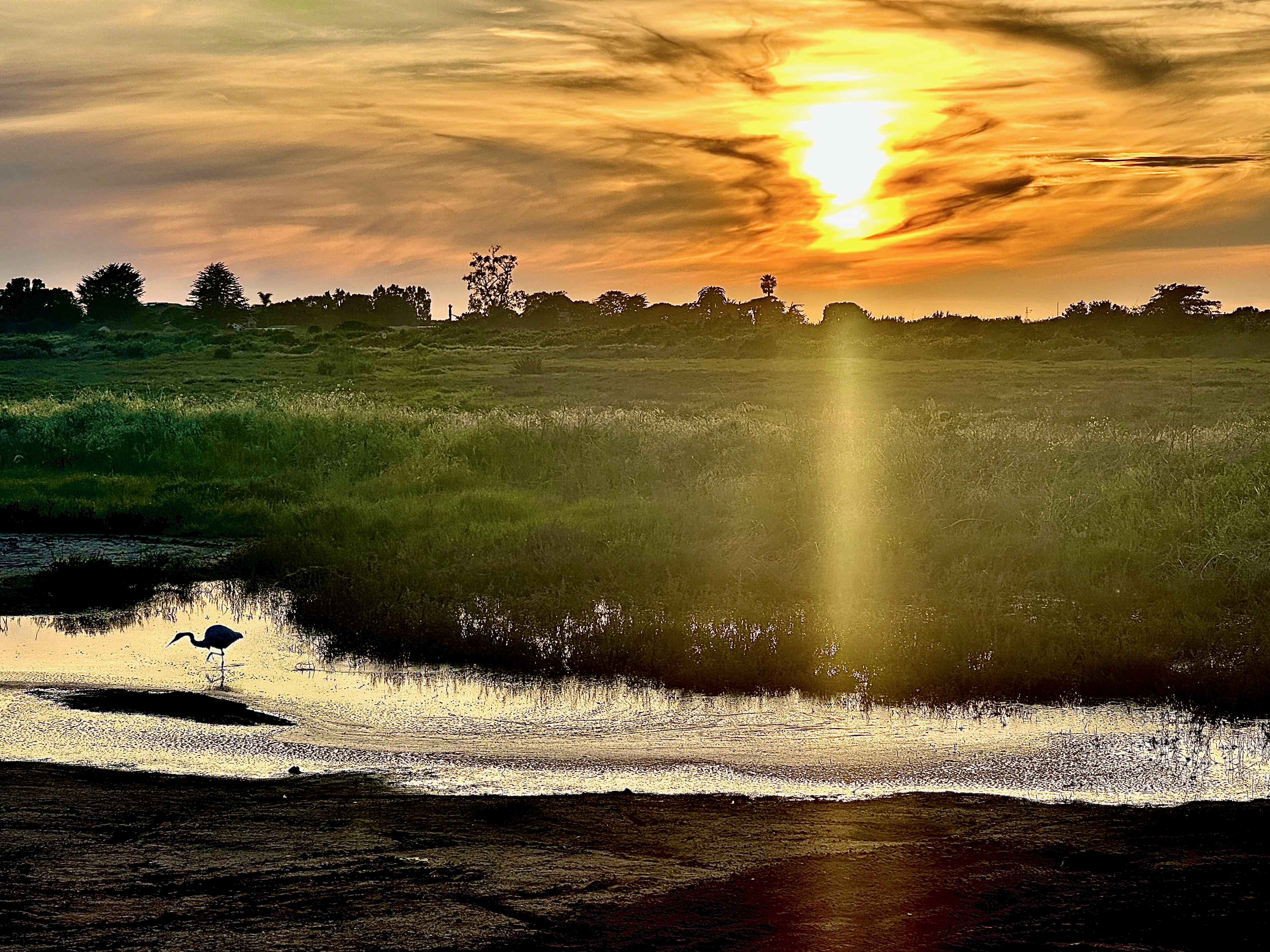 View Sunset on Carpinteria Seal SanctuarySunset with Egret at Carpinteria Salt Marsh