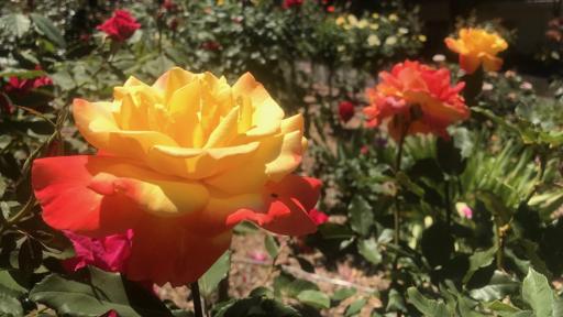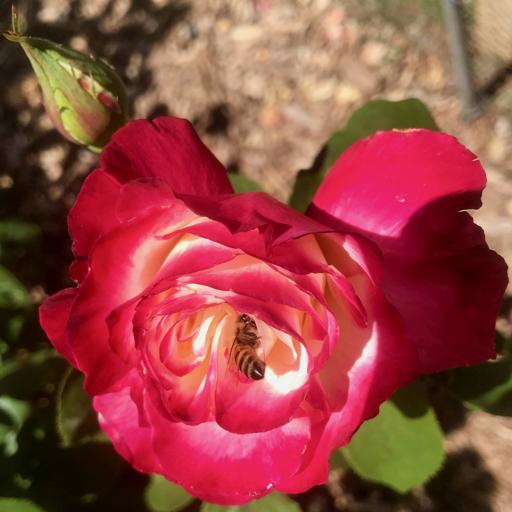 View Blue elderberries in the Ventura river bottomBee on a white and pink rose at Krotona