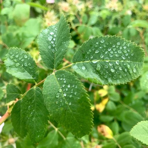 View Dewy wild rose leaves at Ojai MeadowsCalifornia wild roses at Ojai Meadows