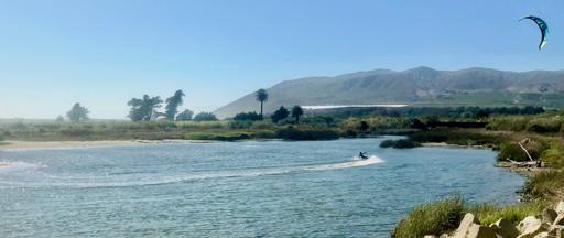 View Parafoils above Ventura River estuaryRailroad bridge at Ventura River estuary