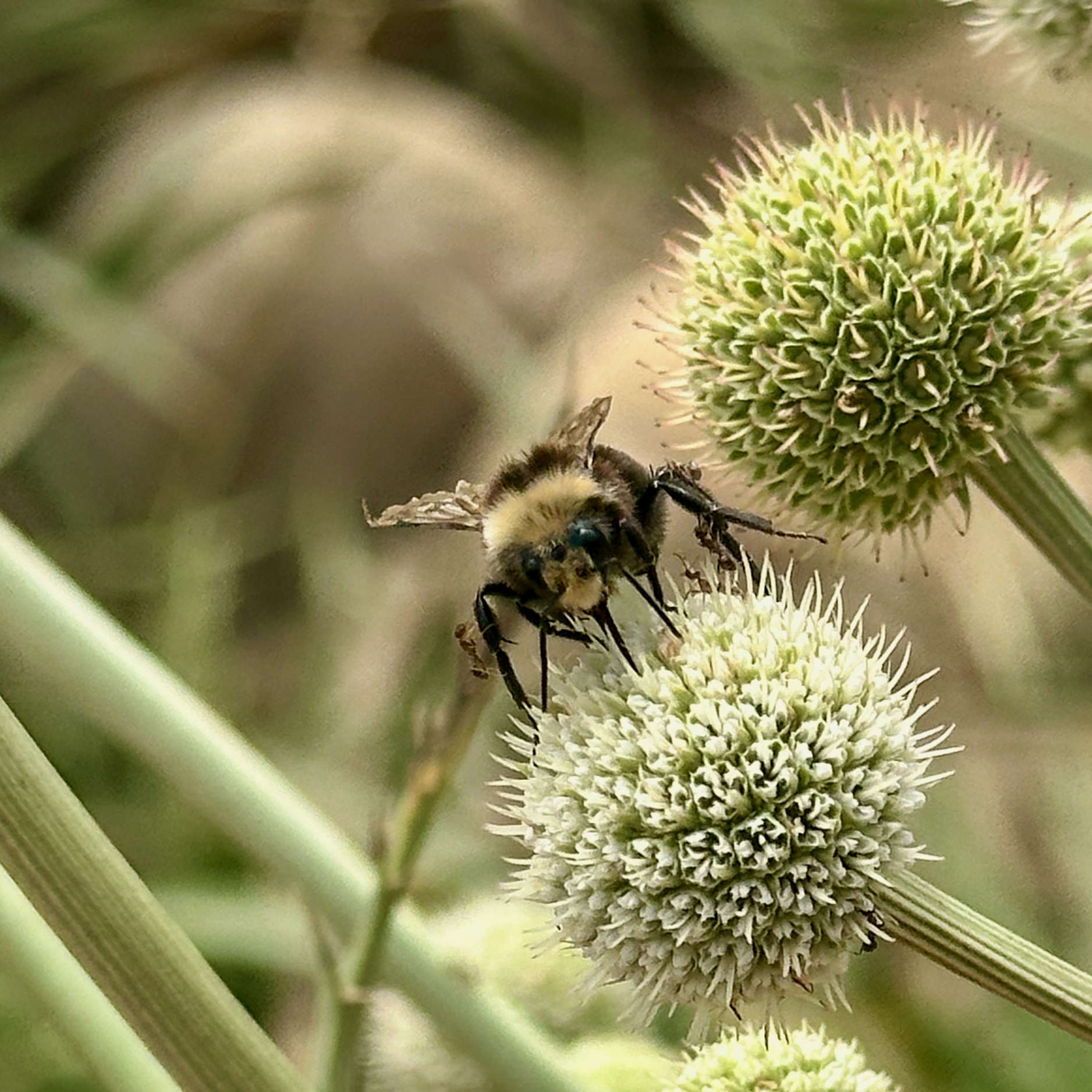 View UntitledUntitled(Maybe: Rattlesnake Master, Rattlesnake's Master, Button Snakeroot, Eryngium Yuccifolium ? Helichrysum Petiolare Hilliard Burtt ?? near Chilean Matorral)