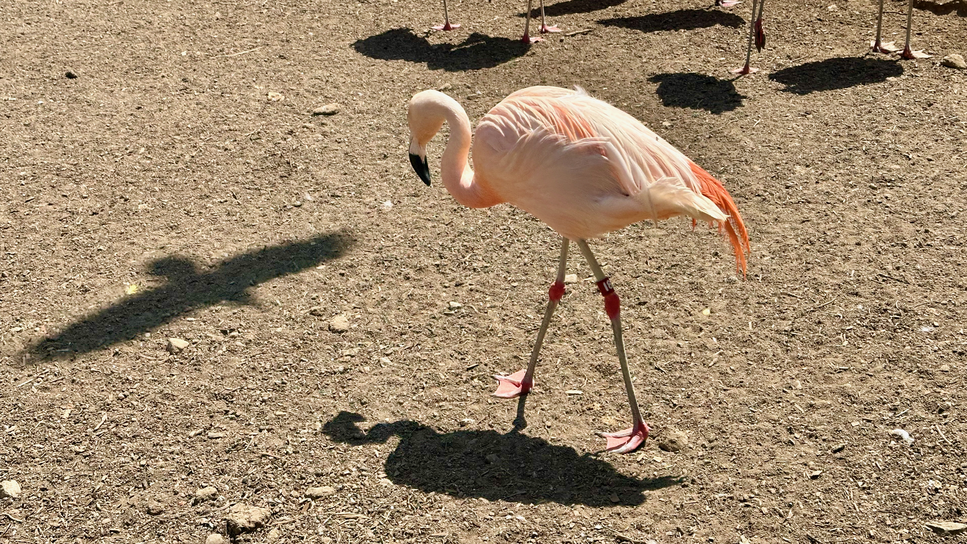 View Flapping Flamingo at the Santa Barbara ZooFlamingo and Hawk Shadow at the Santa Barbara Zoo