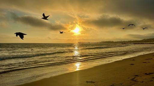 View Sunset with Seagulls at Ventura BeachSunset from Calleguas Creek Trail