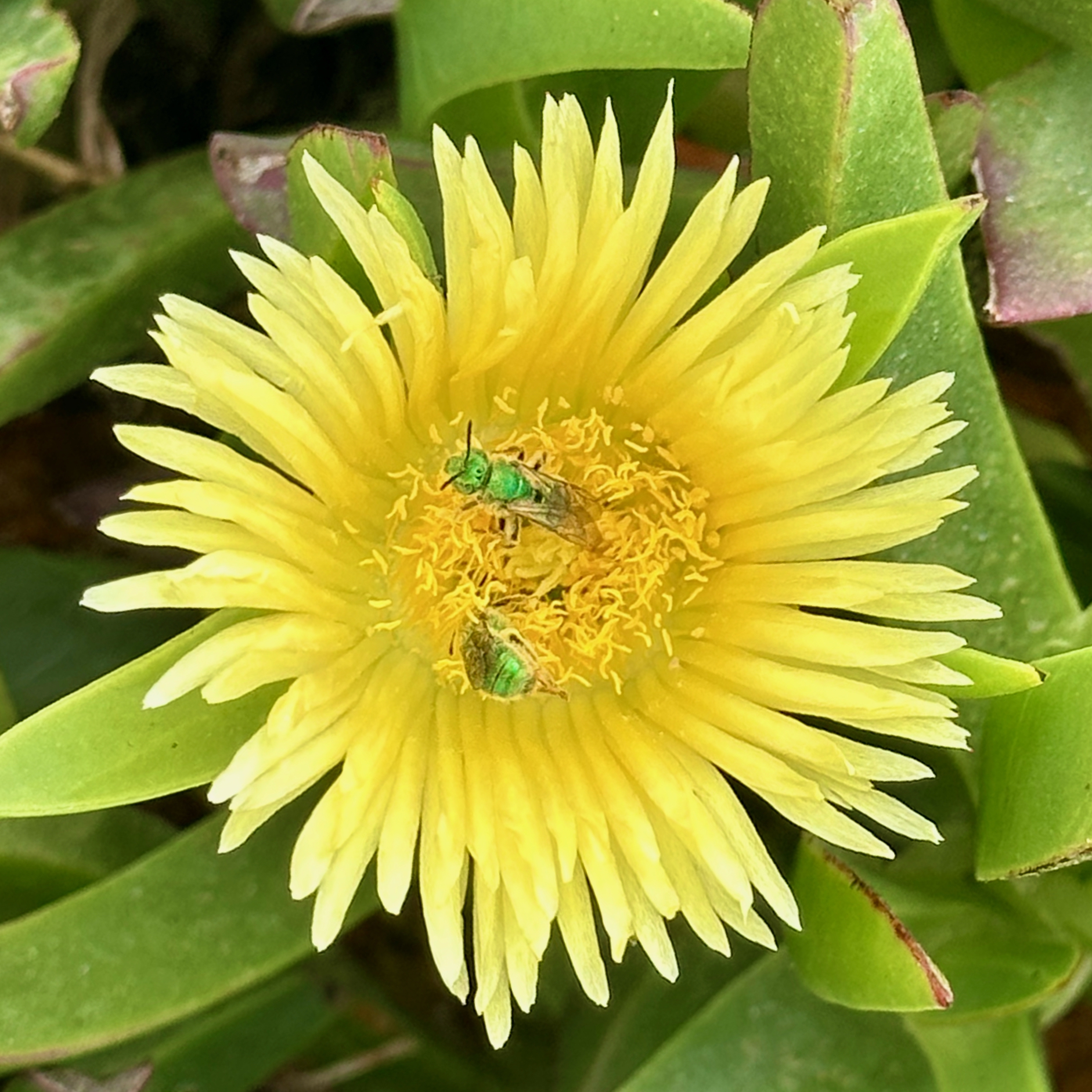 View Green Bees on a Sea Fig at Channel Islands HarborGreen Bees on a Sea Fig at Channel Islands Harbor