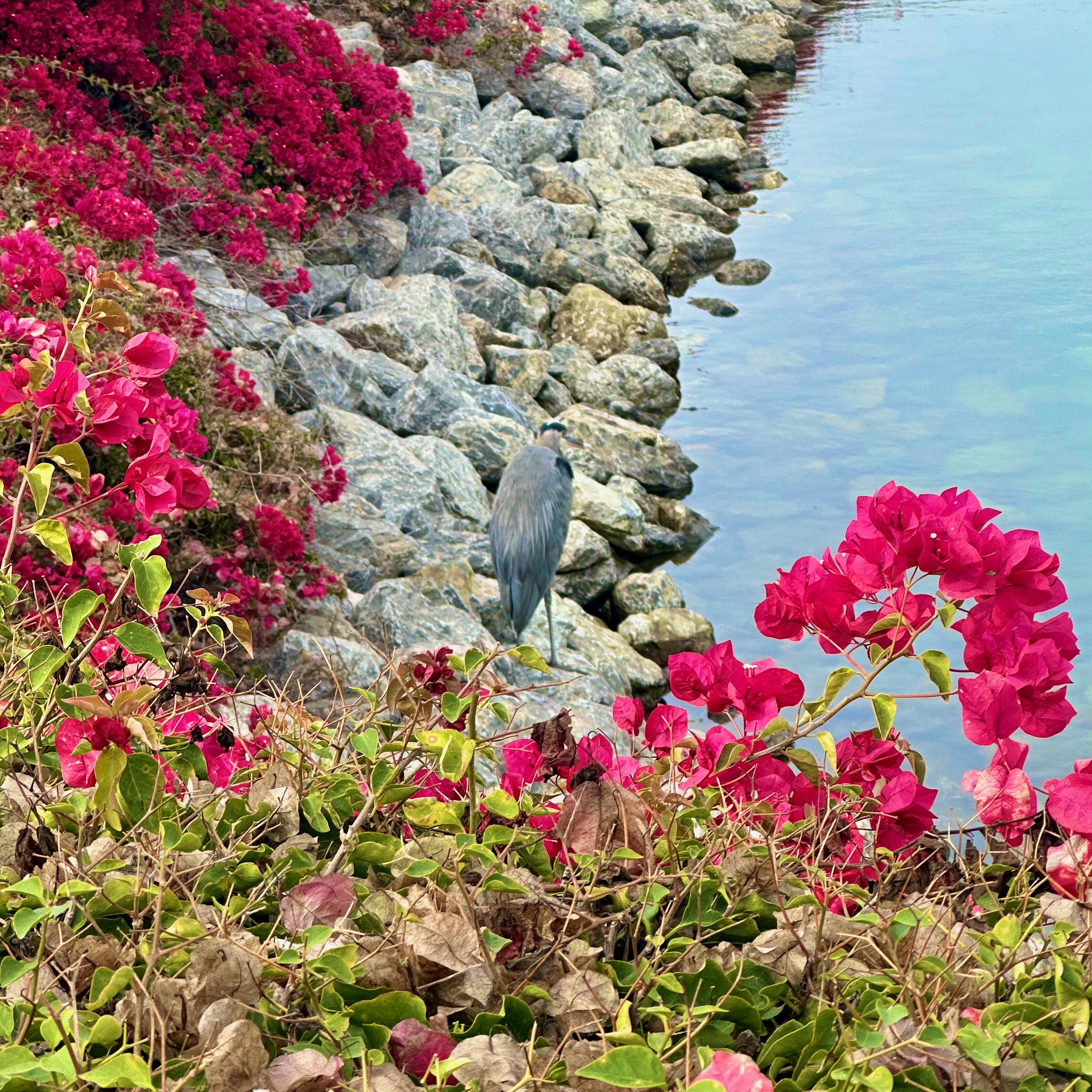 View Heron through Bougainvillea at Ventura HarborGreat Blue Heron at Ventura Harbor