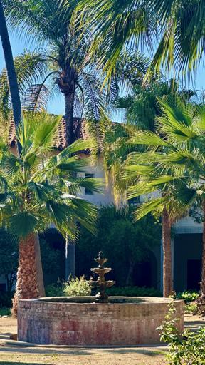 View Spider and Bee battle on Purple Sage at Mission Santa BarbaraFountain at Mission Santa Barbara