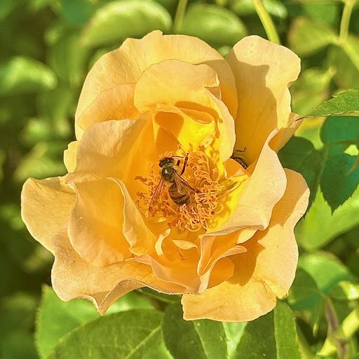 View Yellow Rose at Mission Rose GardenBee in a Musk Rose at Mission Rose Garden