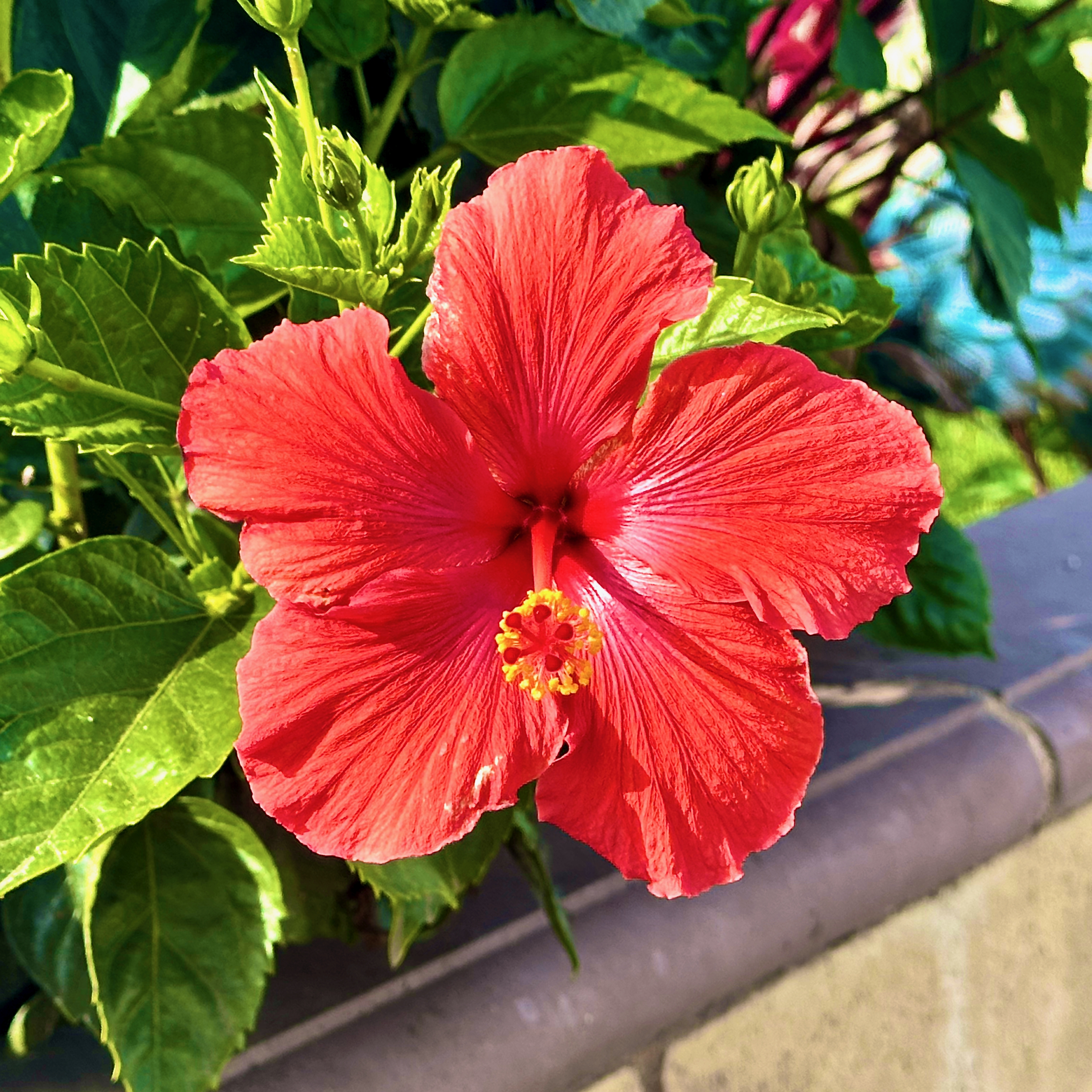 View Hawk on Streetlight at Moonrise from Oxnard East Village ParkBush Hibiscus in Oxnard