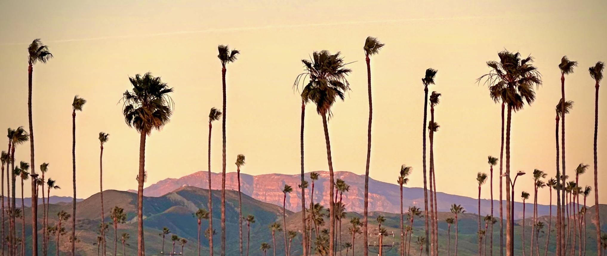 The Pink Moment on Topa Topa through Palms at Ventura Harbor